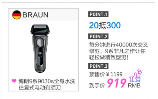 TOP3:博朗 全身水洗往复式电动剃须刀