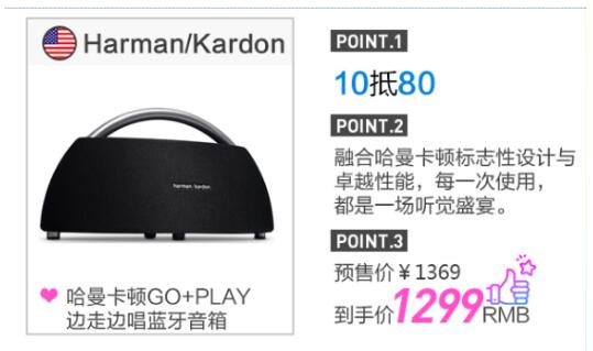 性能出众,功能全面,融合哈曼卡顿标志性设计与卓越性能,每一次使用,都是一场听觉盛宴。目前,苏宁海外购预售价1369元,现在支付定金10元抵80元,到手价1299元。