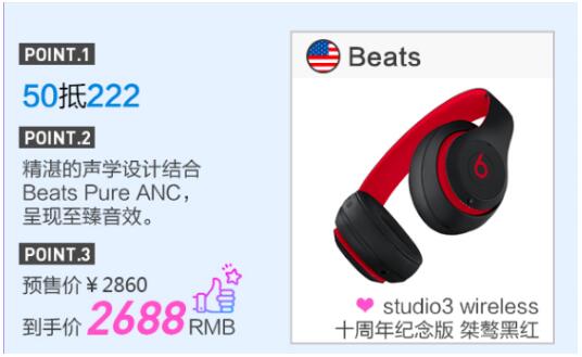 精湛的声学设计结合,Beats Pure ANC (自适应消噪)一直受到追求至臻音效的小伙伴们的青睐。目前,苏宁海外购预售价2860元,现在支付定金50元抵222元,到手价2688元。赶紧买来送给一直都在努力拼搏的自己,累的时候,听听音乐放松一下。